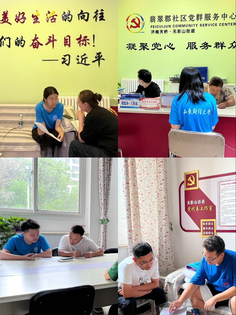 下午两点,调研团队到达了第二站——翡翠郡南区社区党群服务中心。通过和社区工作人员交谈,调研团队的成员们发现,社区党群服务中心会不定时为居民举行党建活动,并设立“济南智慧社区平台”为居民提供切实服务。团队成员们在社区工作者的介绍下了解了翡翠郡社区智慧平台中通讯类、缴费类的相关应用、为提升生活便捷度而设立的“十五分钟生活圈”、社区动态信息发布的相关流程等。社区工作人员介绍到,通过技术手段实现的智能化智慧平台不仅提高了社区工作的服务效率,还提升了社区居民的生活质量与幸福感。最后,beat365官方网站调研团队分组采访了社区的工作人员并向其发放调查问卷以便后续的数据处理。