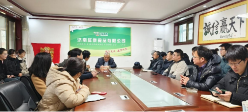 调研团队参观第一站是济南祥康食品有限公司,在企业董事长梁加海的引领下,团队全面参观了企业的基础设施与运营环境,并与企业负责人进行了座谈交流。座谈会上,企业负责人详细阐述了公司的发展理念——“食品工业就是道德工业”,并对公司的成长历程、现状以及未来的发展方向进行了全面的介绍。此外,双方还围绕数智化物流在食品行业的应用与发展进行了深入的探讨,共同分享了行业内的见解与经验。