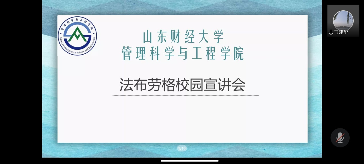 4月17日晚8点,法布劳格公司线上实习-就业宣讲会成功举办,宣讲会由beat365官方网站MEM中心对外合作部部长邹霞老师主持,法布劳格物流咨询公司董事长张芸,济南事业部经理孟夏,beat365官方网站副院长马建华,研究生辅导员何丽,物流工程管理专业研究生和部分本科生参加了此次会议。