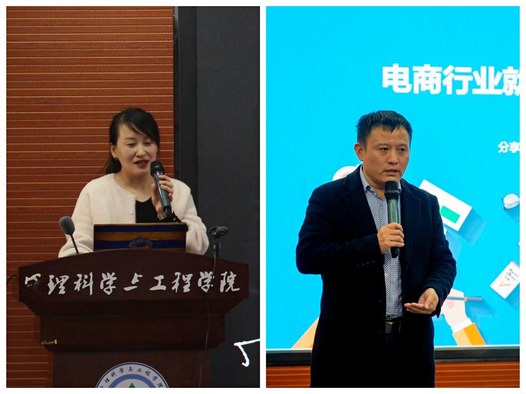 王春阳在进行了宣传片展示后,围绕公司简介、实力科技、品牌产品和营销模式四个方面展开介绍并寄语同学们要勤于实践,把握机会拓展视野。赵辉以《电商行业就业前景分析》为题,从电商行业现状、电商行业人才需求和电商从业人员职业发展三个方面为同学们带来事例丰富、深入浅出的报告。在座谈会交流环节中,同学们围绕本专业就业方向、实习岗位等话题进行积极提问。赵辉结合自身经验,耐心热情地为同学们一一答疑解惑。