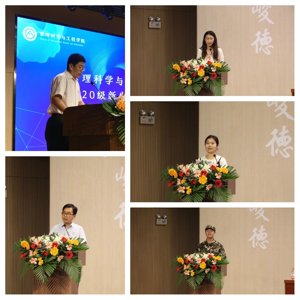 教师代表张戈告诉同学们,大学学习不仅要做好对专业知识的积累,更要对社会的发展和需求有敏锐的洞察力,学会将专业知识投入于实践,充分发挥个人才智,为社会做出贡献。2020级信息管理与信息系统毕业生庞甜馨用自己的大学经历,为同学们的大学生活分享经验、提出建议。2018级在校生代表宁砚紫用亲身经历,解读梦想的力量,她勉励同学们不须困惑,不必辗转,正当其时,放手去搏。2020级管理科学与工程类丁甲旺代表全体新生发言,他表示将会刻苦努力,不懈坚持,不负学院老师的关怀与家庭的期望,成为全方面发展的财大管科学子。