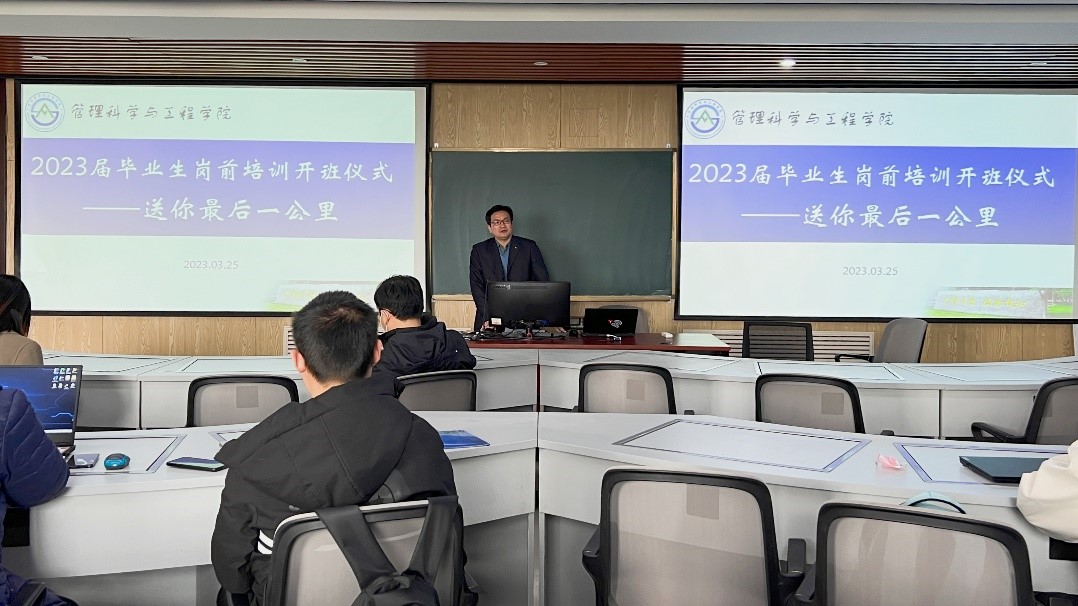 3月25日,beat365官方网站举行“送你最后一公里”2023届毕业生岗前培训开班仪式。学院院长刘位龙、信息系主任张戈、信息系教师代表、山东金现代领导、教师出席会议,党委组织员兼19级辅导员冯婧主持会议。
