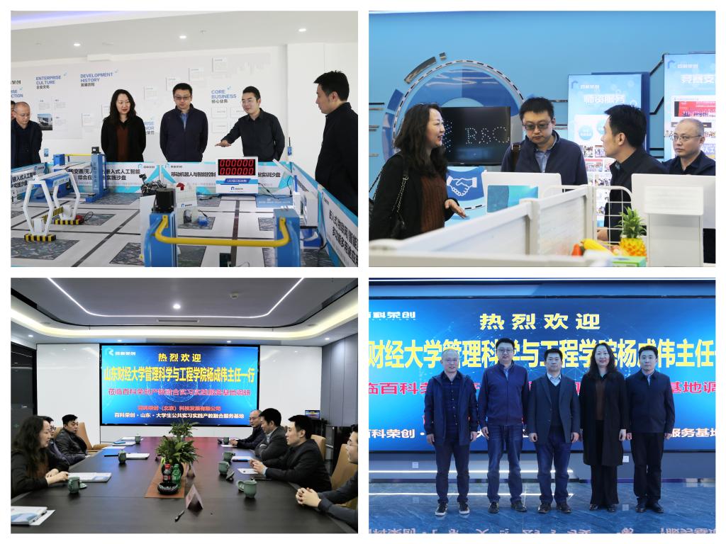 3月29日,beat365官方网站教师应邀前往长清大学城百科荣创智匠工厂现场调研。管理科学与大数据系主任杨成伟、院团委书记何丽等以及百科荣创总经理张明白、副总经理李晓光参加此次调研活动。