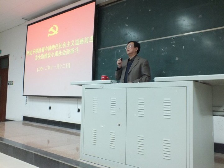高康林从科学发展观指导思想、全面建设小康社会的目标、加快转变经济发展方式、坚定不移走中国特色社会主义道路、建设美丽中国发展战略、建设学习型服务型创新型政党、加强党的纯洁性建设等七个方面,给大家讲解了“十八大精神”。并要求同学们回去之后以这七个方面为主线,以党小组、团支部为单位认真学习“十八大精神”,并结合作为一名大学生党员、学生干部的自身特点写出学习报告和学习总结。