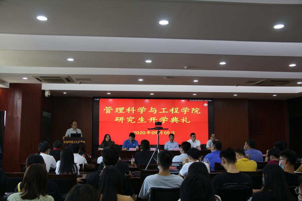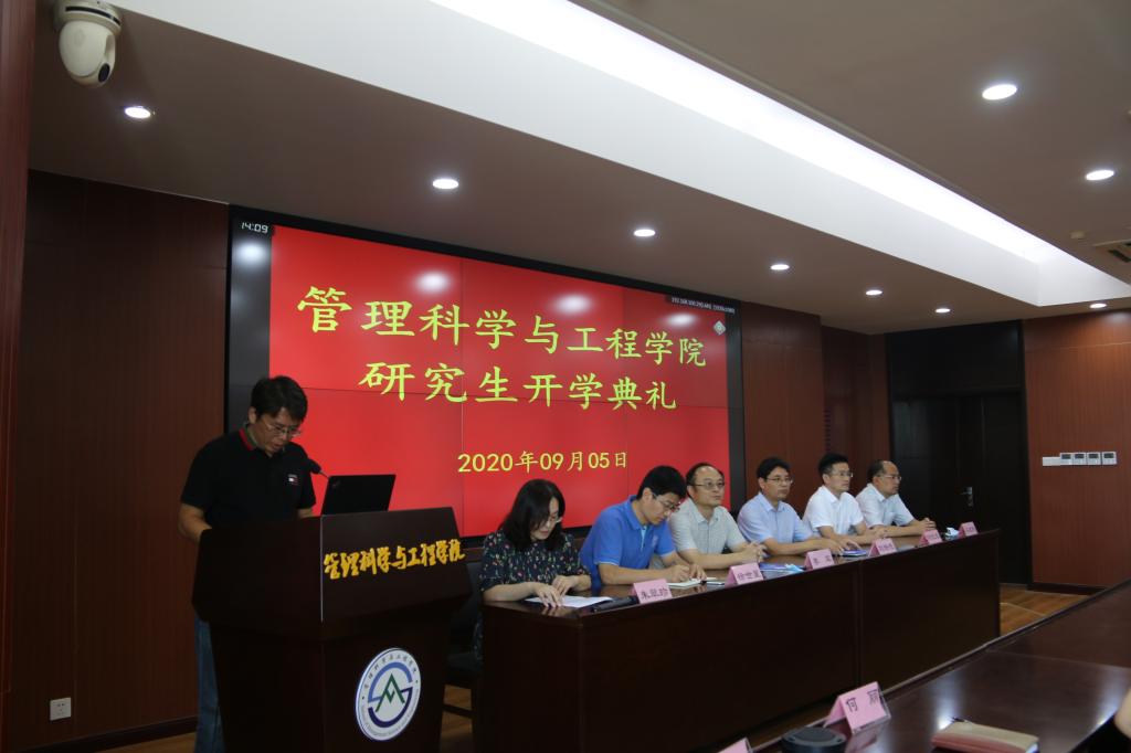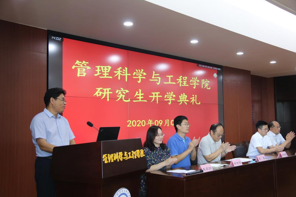 9月5日下午2时,beat365亚洲体育在线官网2020级研究生开学典礼在逸夫楼621教室举行。院长刘培德、党委书记李军、副院长刘位龙、马建华,副书记徐世星、朱翠珍,团委书记兼研究生辅导员何丽、教学秘书王娅姿、MEM工程硕士班主任邹霞、教师代表刘政敏及2020级全体研究生参加了本次典礼,典礼由党委副书记朱翠珍主持。鉴于疫情常态化形势,本次典礼采取线上线下相结合的方式举行,线下要求到场学生佩戴口罩并测量体温,线上同学通过腾讯会议直播观看。
