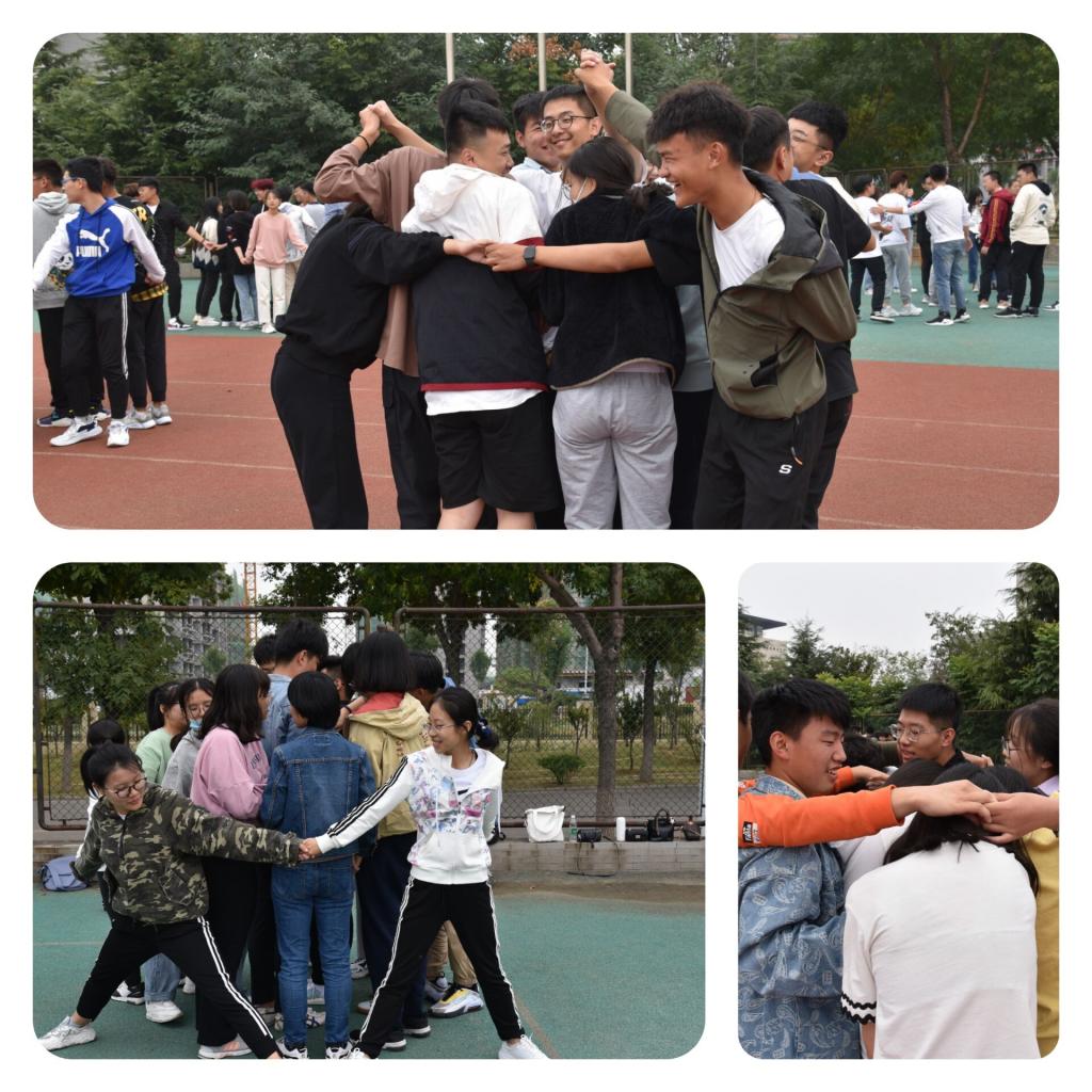 在王桂月、沈健老师的指导及各位带班带领下,同学们积极参与游戏,活动期间气氛活跃,笑声不断。通过进行解手链、万里长城、贴膏药等多个素质拓展活动,同学们锻炼了自身综合素质,增进了班级之间的凝聚力,极大程度地丰富了平日的课余生活。
