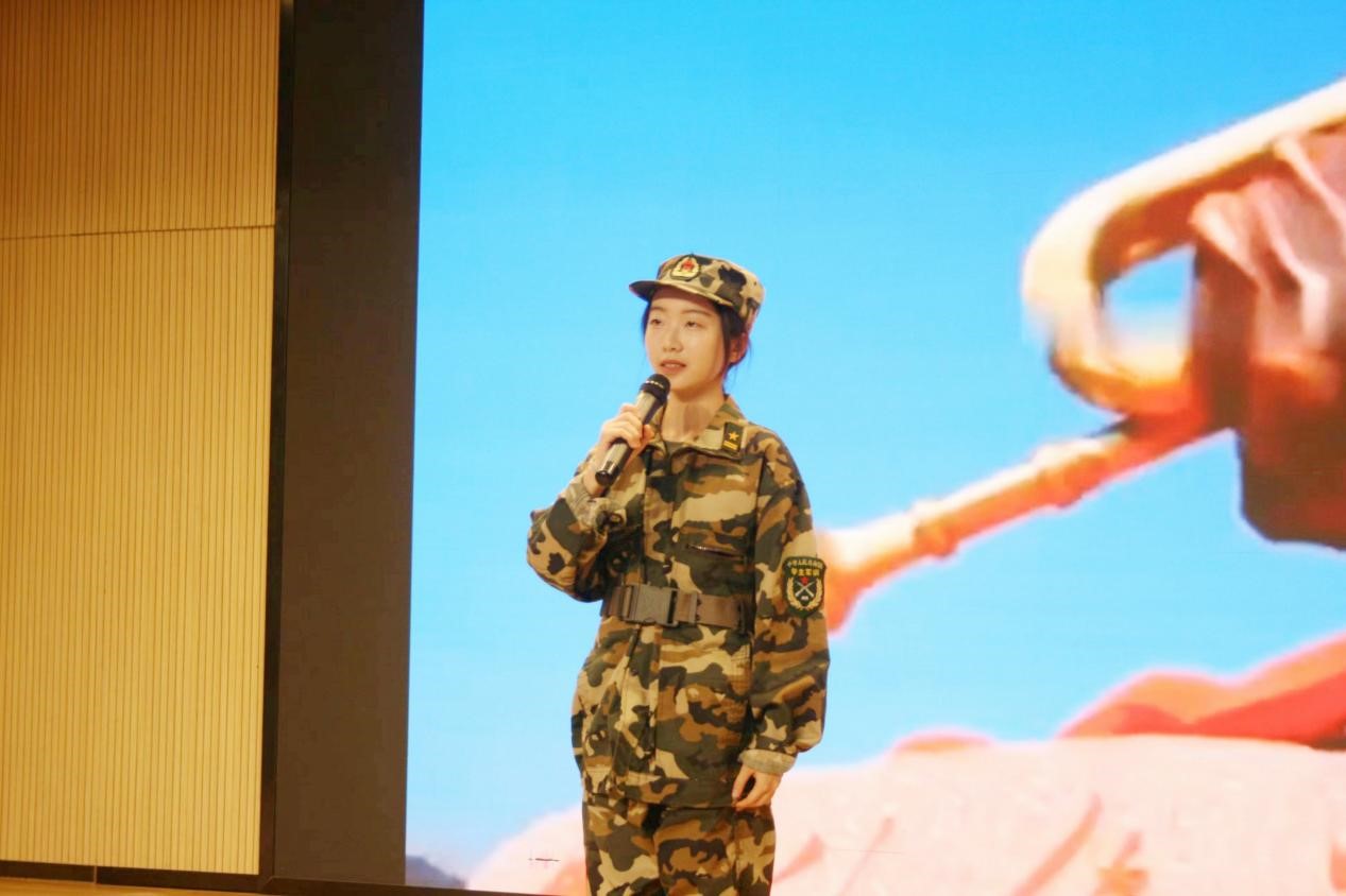 何百汇带来了《昔日精神永不朽,今朝吾辈定当自强》。她首先带领同学们回顾了革命先烈的英雄事迹,赞扬了革命先烈坚如磐石的国防力量以及自强不息的奋斗精神。她强调,国防是集体的责任,吾辈青年当继承先辈之精神,与时俱进,求真务实,踔厉奋发强国防,勇毅前行向复兴。