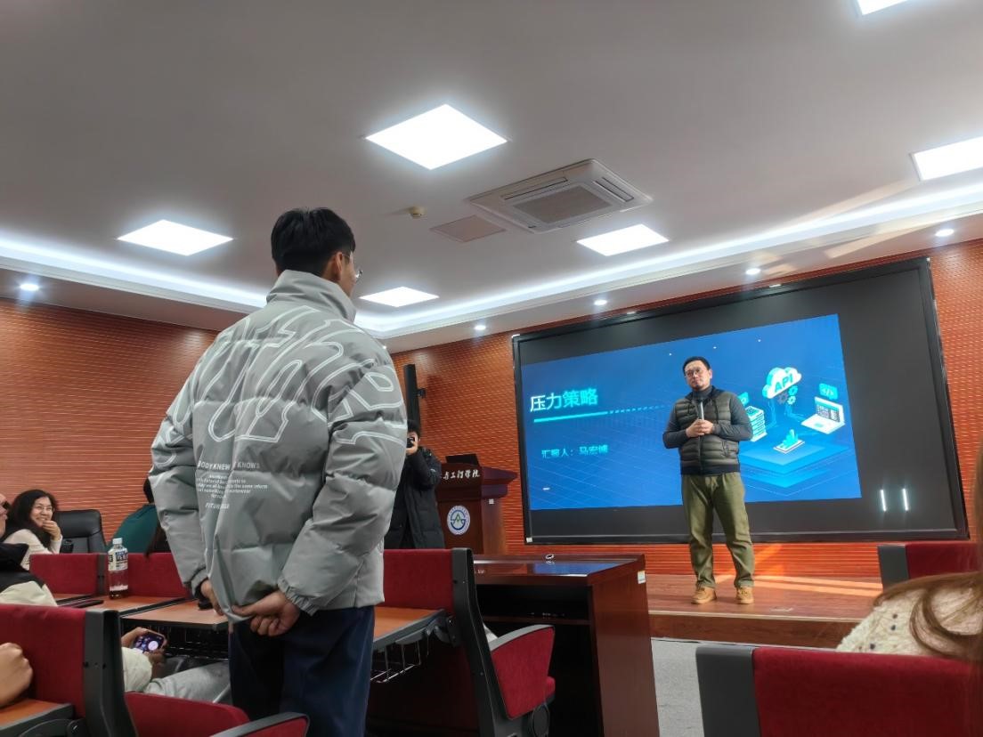 在互动交流中,马宏博先生强调,我们应当学会正面应对压力,合理划分生活问题的优先级,有效地为压力“减负”,以最佳状态迎接人生的挑战。他鼓励大家积极参与社会活动,通过实践拓宽视野,解决问题,从而在应对压力中不断成熟。在讲座的最后,马宏博先生真诚祝愿每一位同学都能在未来的道路上走得更远,实现自己的梦想。