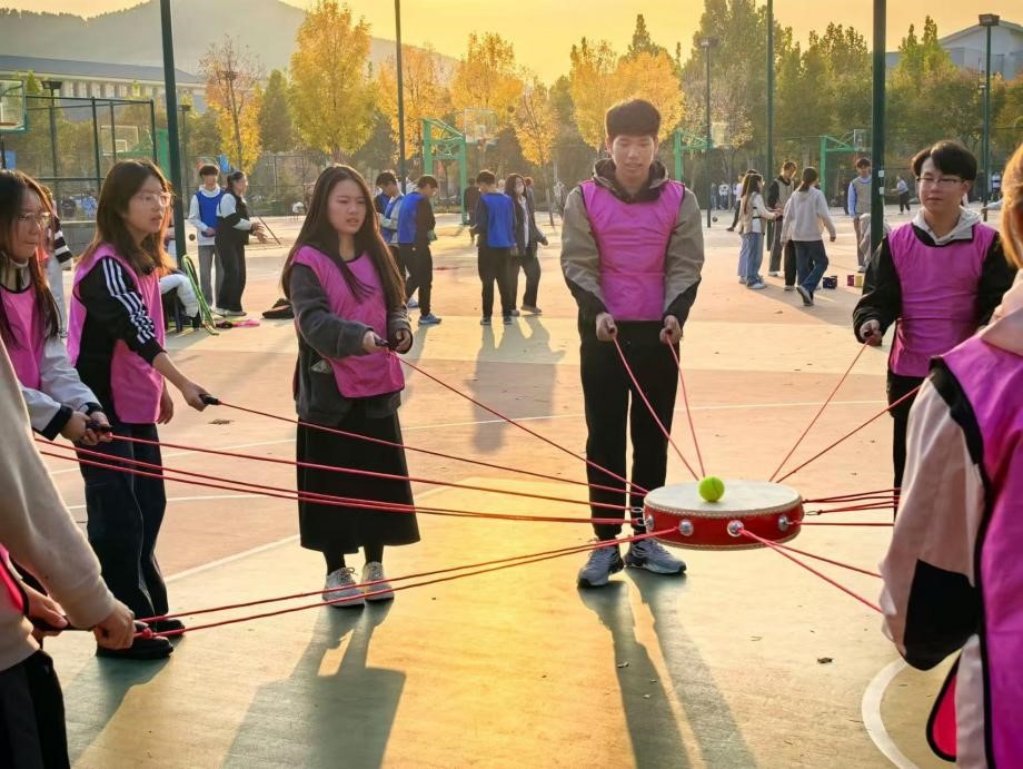 同学们在素质拓展教练的引导下分组,并进行了“合力建塔”“同心击鼓”“不倒森林”“珠行万里”等一系列团队活动比拼。在这些活动中,同学们积极讨论,启动思维,齐声呐喊,团结协作共同寻找最佳解决方案。活动的尾声,同学们积极交流体验,深切地体会到了班级的归属感。